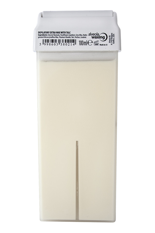 100ml-es, széles görgőfejjel ellátott hintőporos gyantapatron, hiperérzékeny bőrre és intim területekre, extra tapadással, így hatékonyan és kíméletesen távolítja el az erős szőrszálakat is.