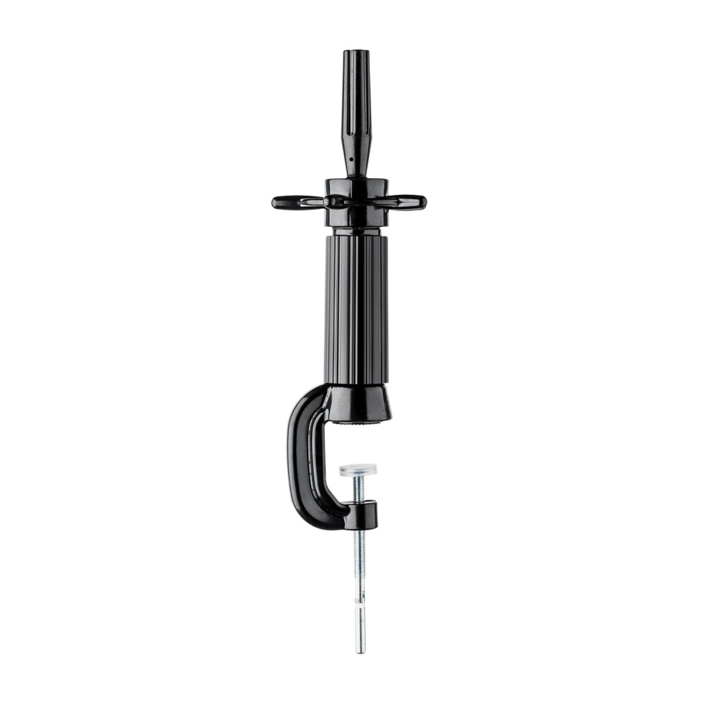 Asztalra szerelhető babafej tartó konzol, amellyel stabilan rögzítheted a munkalaphoz a babafejet. Maximum 5 cm vastagságú asztallaphoz rögzíthető. 11 cm-es magasítóval rendelkezik.