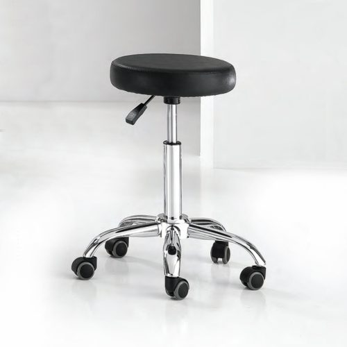 Basic gurulós forgózsámoly fekete műbőr kárpittal, csillag talppal. Ez a forgózsámoly tökéletesen kiegészíti a szalon berendezését, vágáskor is használható, vagy csak a recepciós pultnál ülve; a szék kiválóan segíti a professzionális munkát a fodrászszalonokban és a szépségközpontokban egyaránt. A kényelem érdekében extra poliuretán párnázattal, műbőrrel kárpitozott a könnyű tisztítás érdekében.