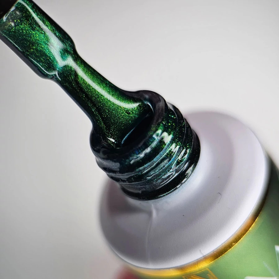 Mágneses csillámszemcséket tartalmazó professzionális géllakk. A kerek vegű puha ecsettel könnyen, csíkmentesen lehet teríteni.