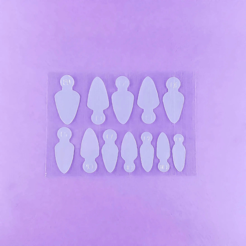 Helyezze a kiválasztott formát a körömágy területére a csúcsforma belsejében, majd rögzítse ujjakkal vagy csipesszel.