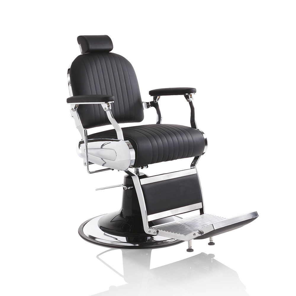 A Hair Cadillac elegáns és nagyszerű barber szék, dönthető háttámlával, kárpitozott lábtartóval és állítható fejtámlával, fekete műbőr borítással áll rendelkezésre. Fekete színével és krómozott elemeivel retro hangulatot idéz a barber szalonodba.