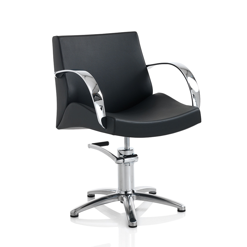 A Hair Moon fodrász szék poliuretán hab párnázással készült.  Az ívelt fém karfa minimalista eleganciát kölcsönöz, így a szalonban egy csipetnyi előkelőséget biztosít.  Csillag alakú forgatható talppal és hidraulikus pumpával és fékkel rendelkezik. A Moon fejmosóval kombinálható, hogy teljes összhang és harmónia uralkodjon szalonodban.