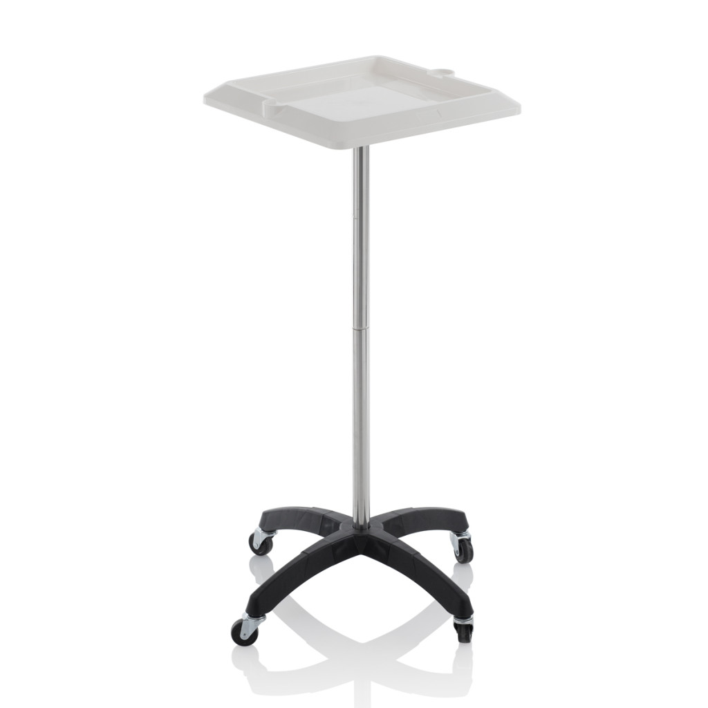 Kelléktartó állvány fehér színben, gurulós kivitelben, praktikus hajfestő ecset tartóval, hogy a mindennapi munkádat megkönnyítse.