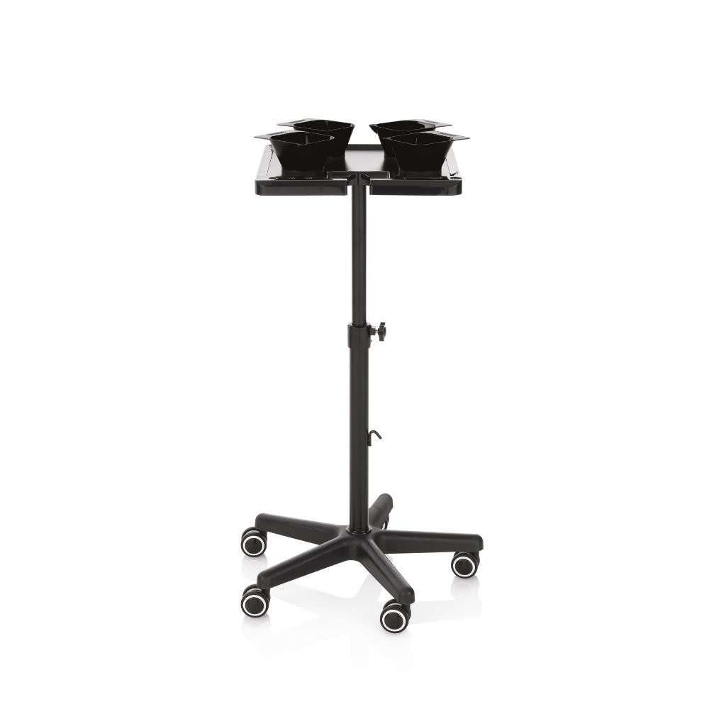 Magnetico festőállvány fekete színben, állítható magassággal, gurulós kivitelben, mágneses keverő tálakkal. Masszív és praktikus eszközkocsi, aminek nagy hasznát fogod venni a fodrász szalonodban.
