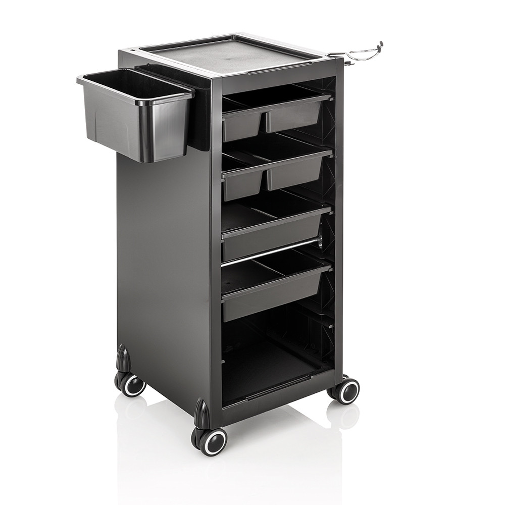 New York Sky eszközkocsi, ami a szalonban végzett munka alapvető többfunkciós segédeszköze. Megfelel a kényelem és az elegáns megjelenés kívánalmainak. Strapabíró anyagból, nagyméretű, praktikus fiókokkal az eszközök tárolására. Eszköz tartóval felszerelt, igény szerint mozgatható. Munkaeszköz szakértőknek, a legújabb belsőépítészeti trendekhez igazítva.