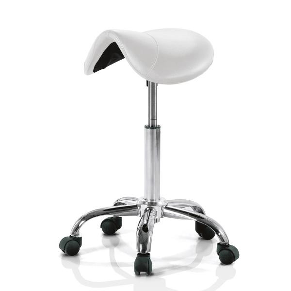 Nyerges gurulós forgózsámoly fehér műbőr kárpittal, csillag talppal. Ez a forgózsámoly tökéletesen kiegészíti a szalon berendezését, vágáskor is használható, vagy csak a recepciós pultnál ülve; a szék kiválóan segíti a professzionális munkát a fodrászszalonokban és a szépségközpontokban egyaránt. A kényelem érdekében extra poliuretán párnázattal, műbőrrel kárpitozott a könnyű tisztítás érdekében.