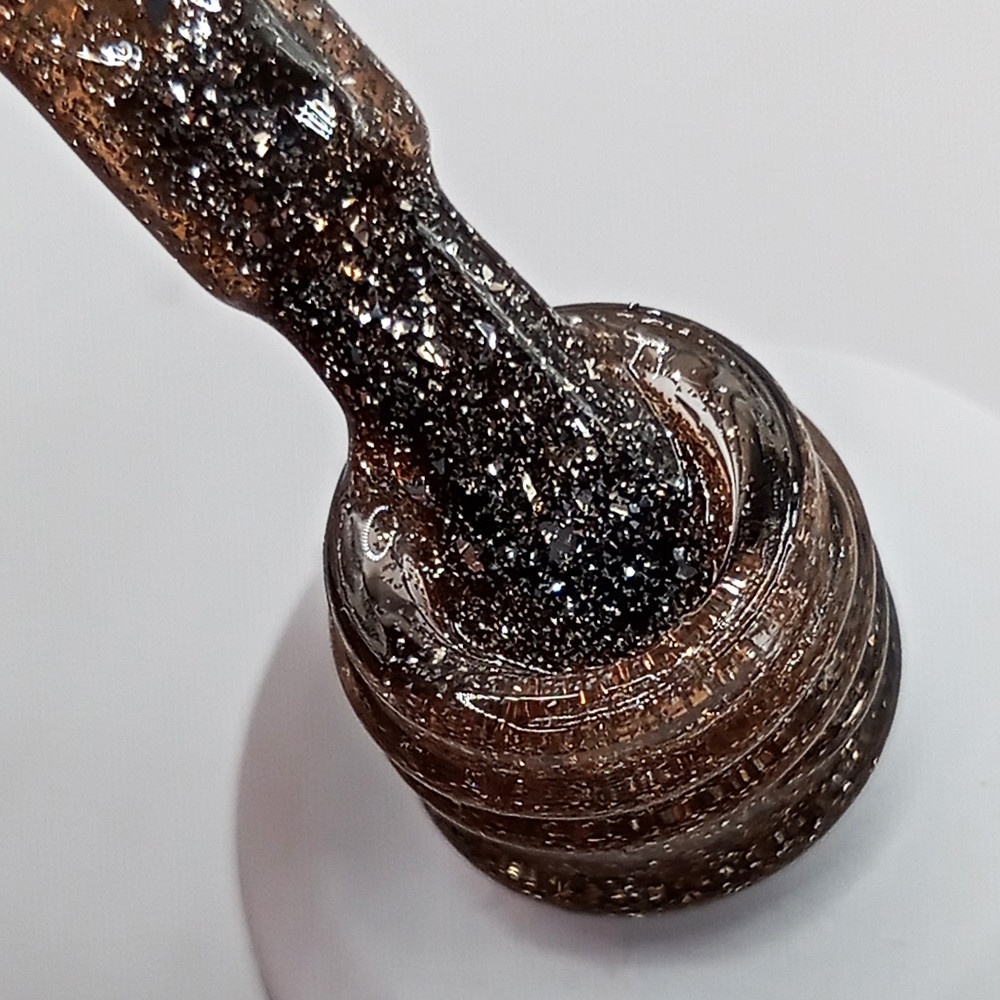 Különböző méretű csillámokat tartalmazó professzionális géllakk a lenyűgözően szikrázó körmökért.