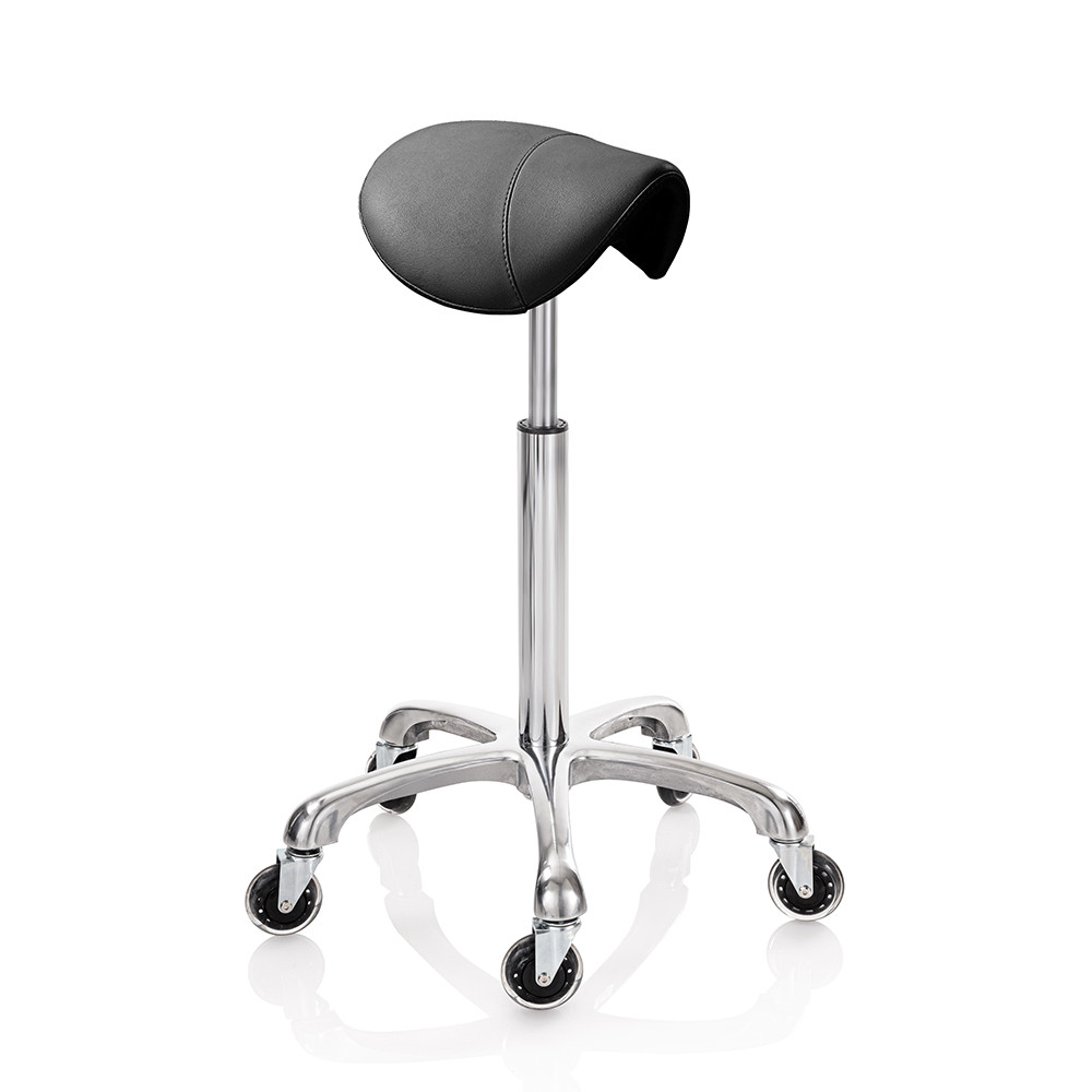 Roller Pro Elité Compact L nyeregzsámolyzsámoly fekete műbőr kárpittal, króm csillag talppal. Ez a forgózsámoly tökéletesen kiegészíti a szalon berendezését, vágáskor is használható, vagy csak a recepciós pultnál ülve; a szék kiválóan segíti a professzionális munkát a fodrászszalonokban és a szépségközpontokban egyaránt. Elegáns, ergonomikus és tartós – ideális választás forgalmas szalonokba.