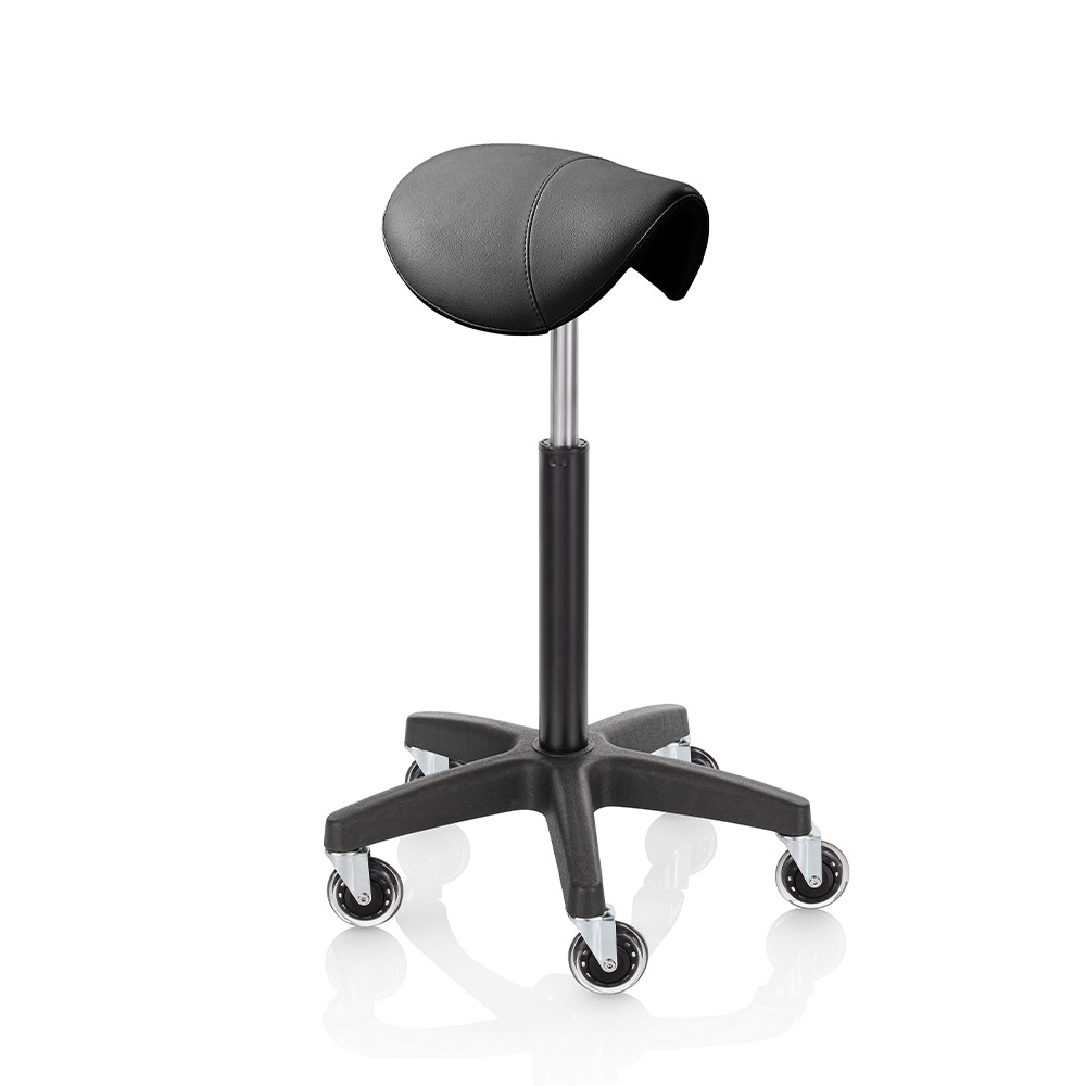 Roller Pro Elité Standard M nyeregzsámolyzsámoly fekete műbőr kárpittal, króm csillag talppal. Ez a forgózsámoly tökéletesen kiegészíti a szalon berendezését, vágáskor is használható, vagy csak a recepciós pultnál ülve; a szék kiválóan segíti a professzionális munkát a fodrászszalonokban és a szépségközpontokban egyaránt. Elegáns, ergonomikus és tartós – ideális választás forgalmas szalonokba.